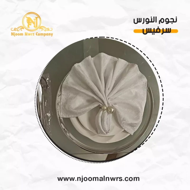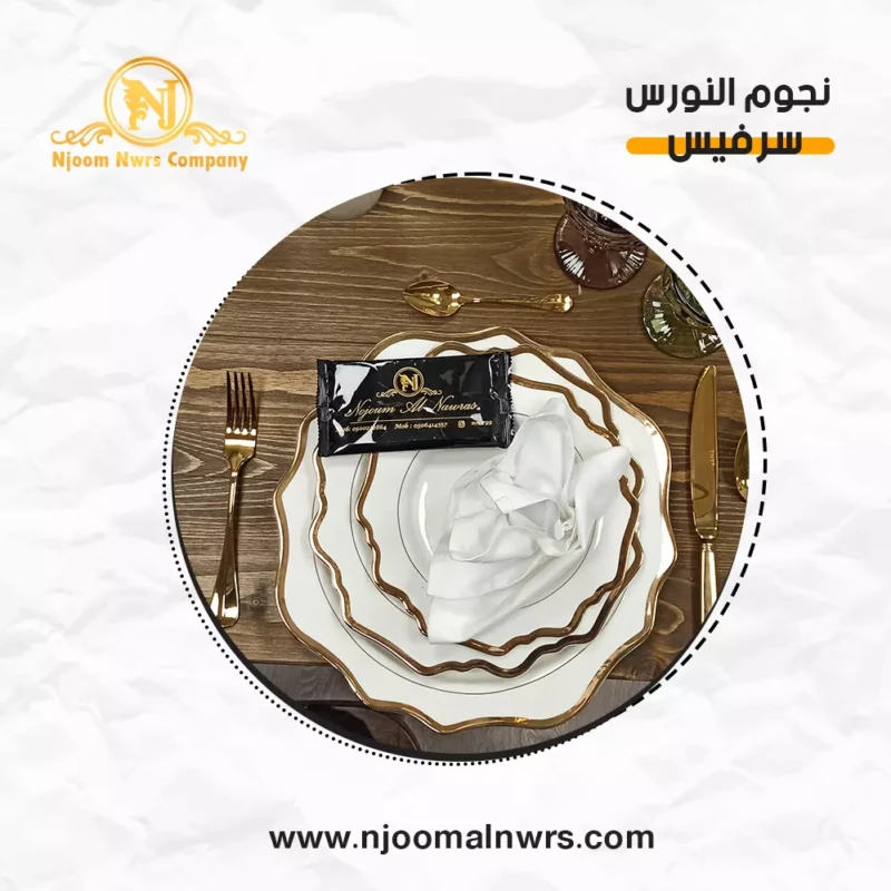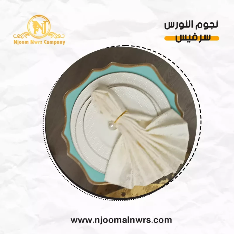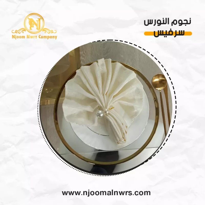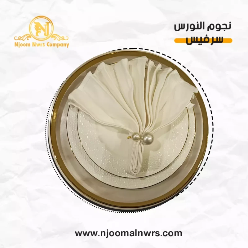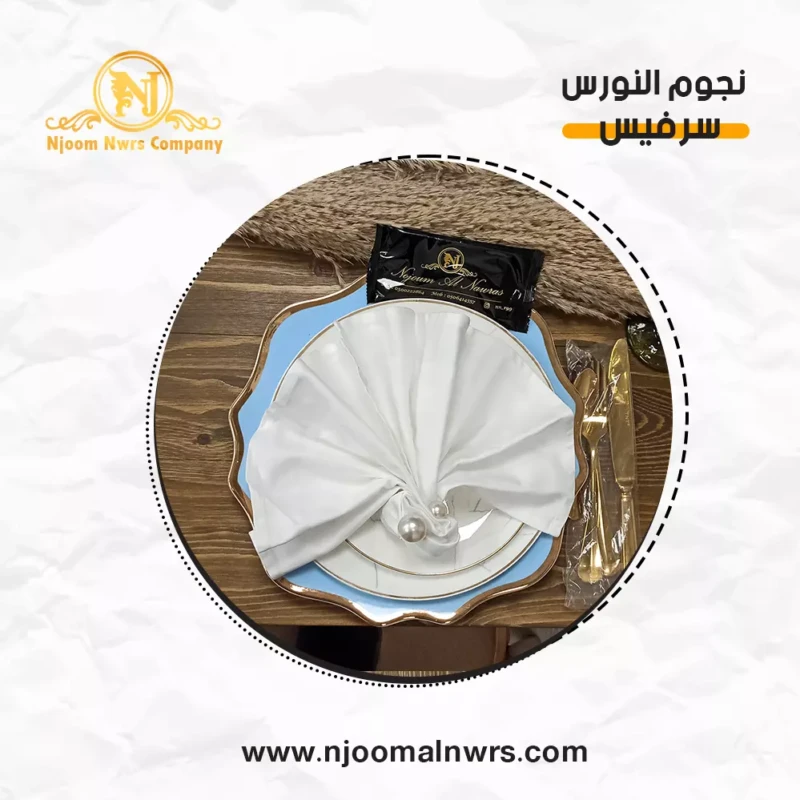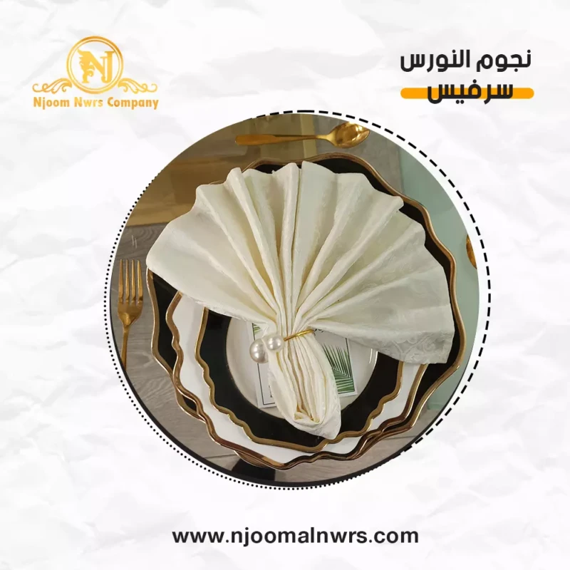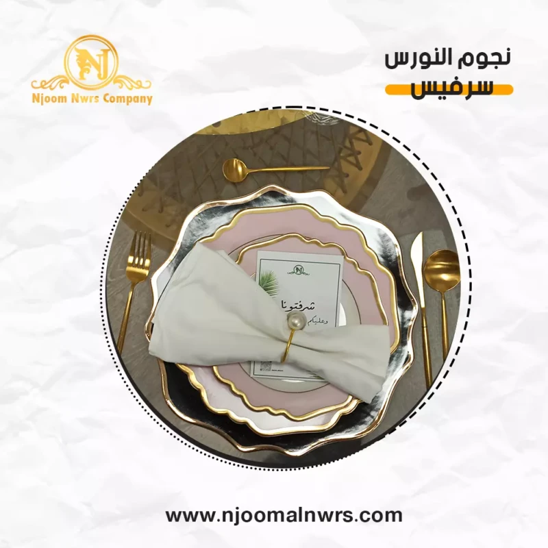 صحون كاسات ملاعق مناديل ورد على الصحن