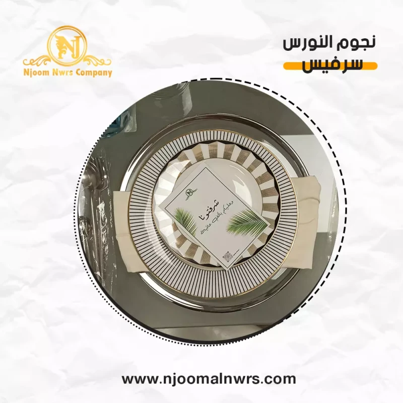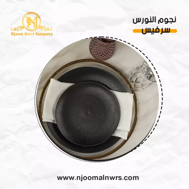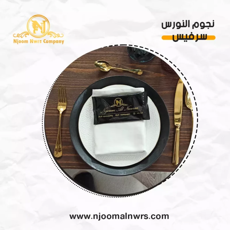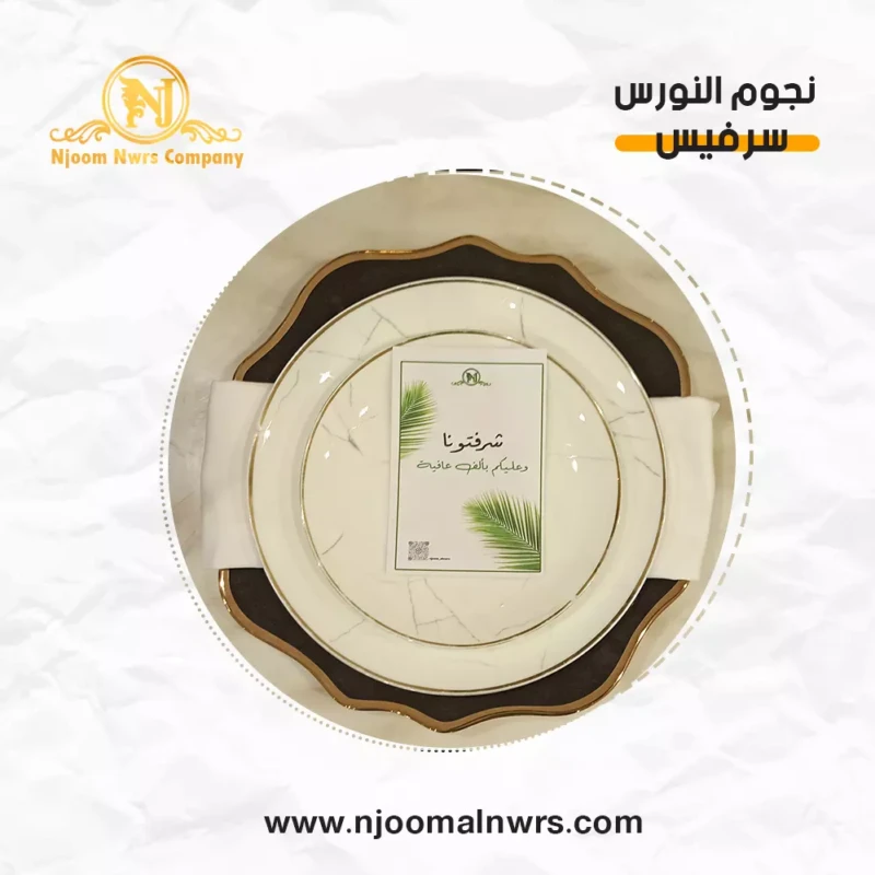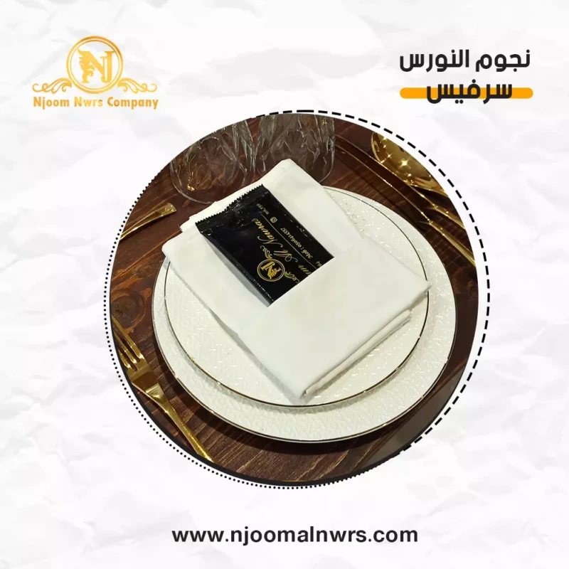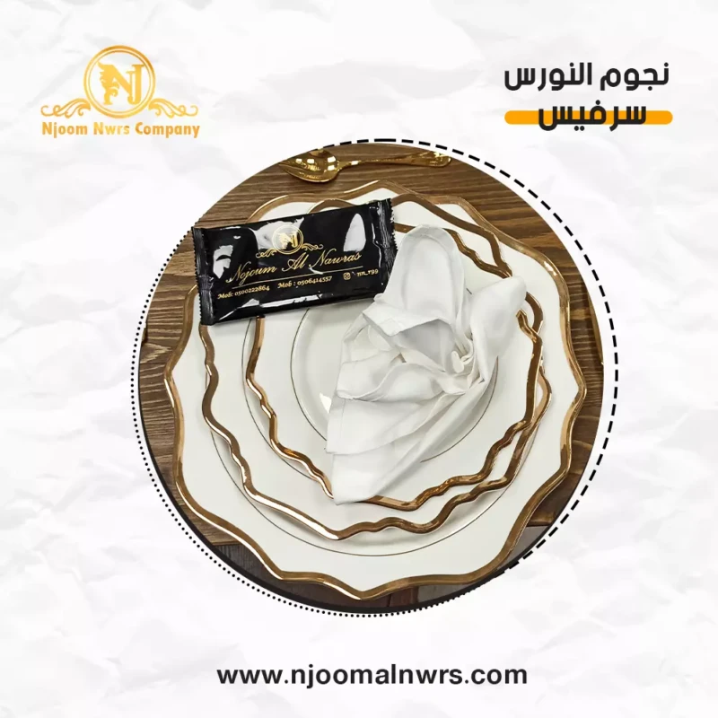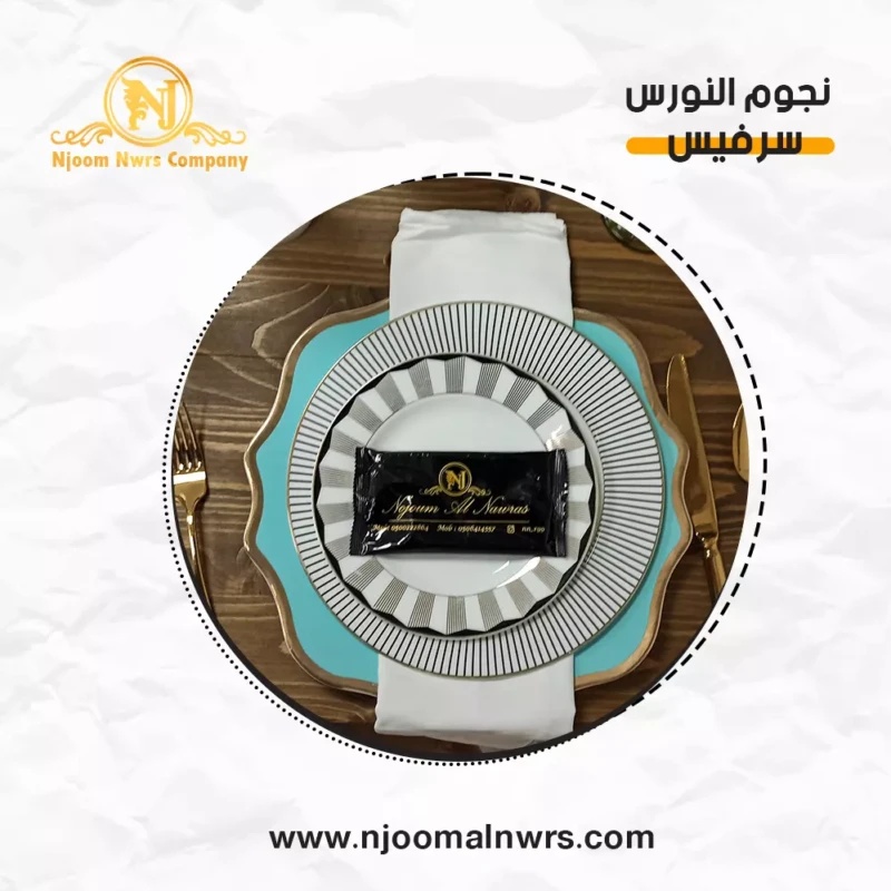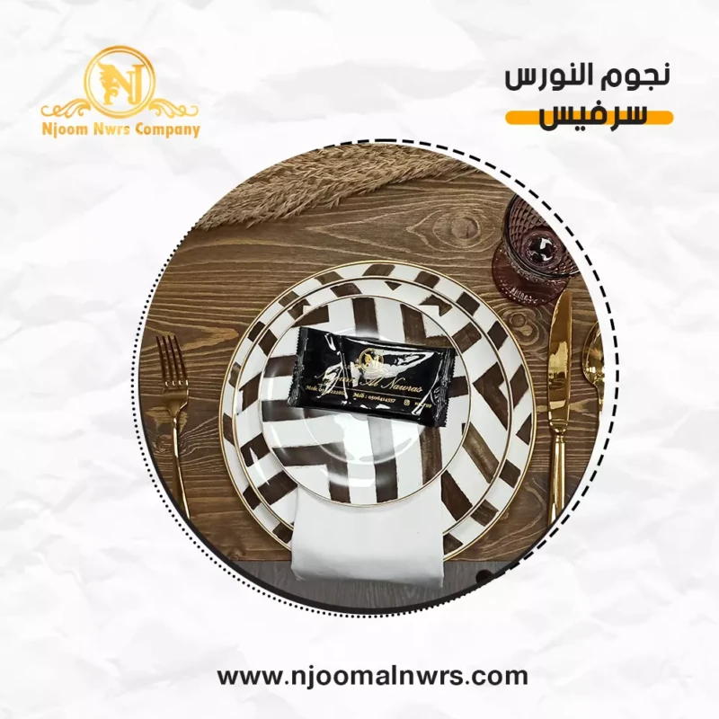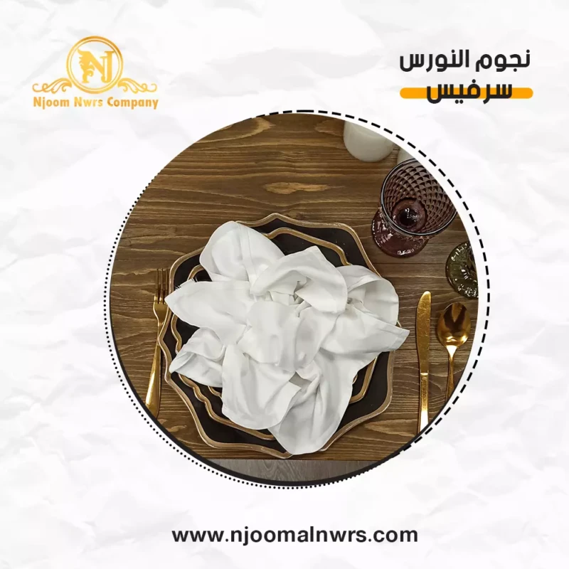 صحون كاسات ملاعق مناديل ورد على الصحن