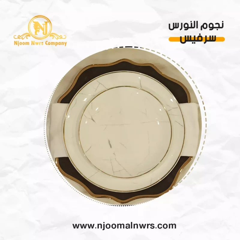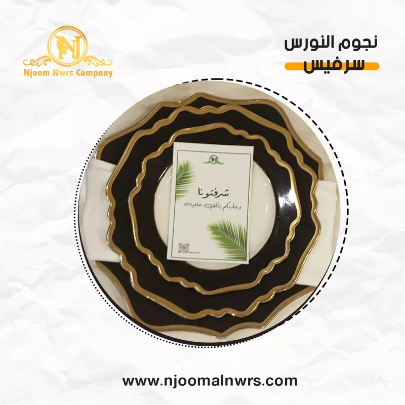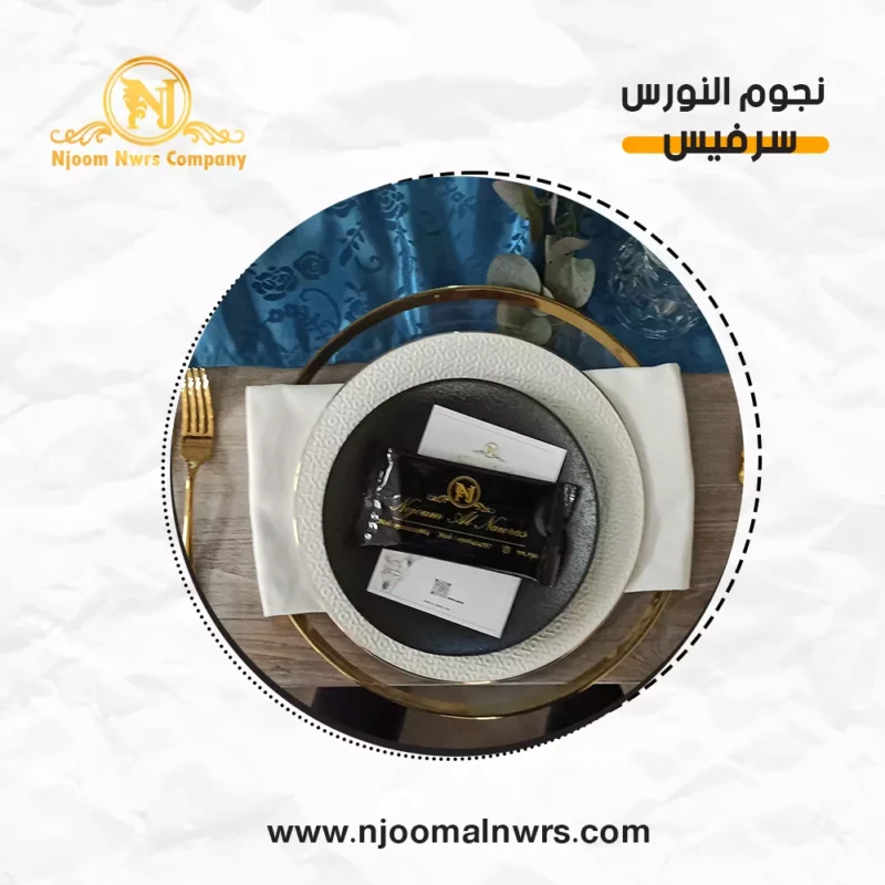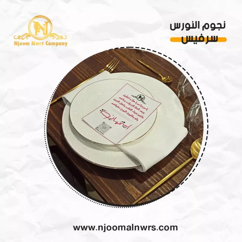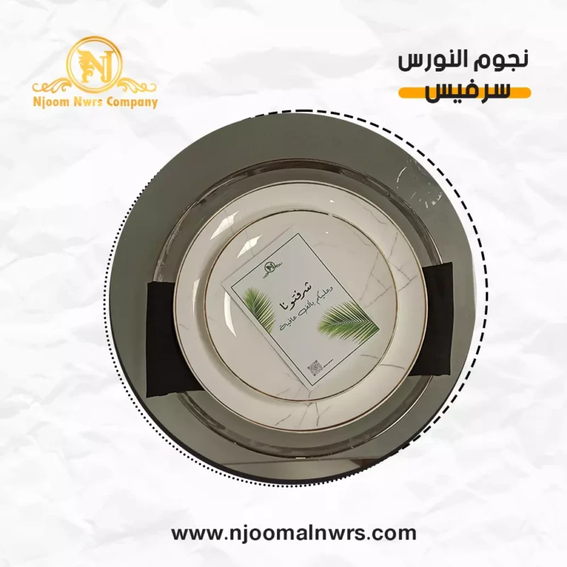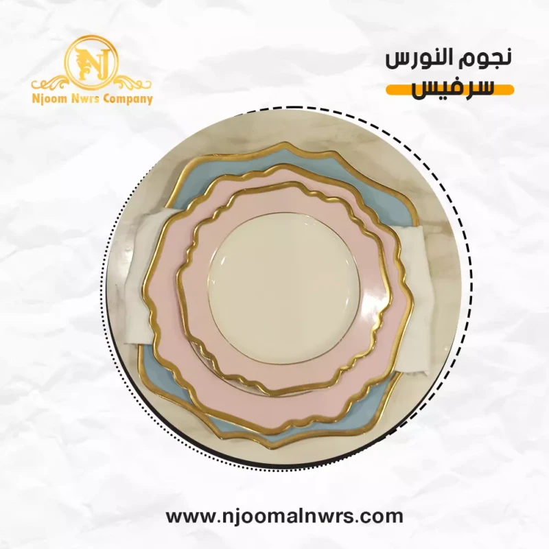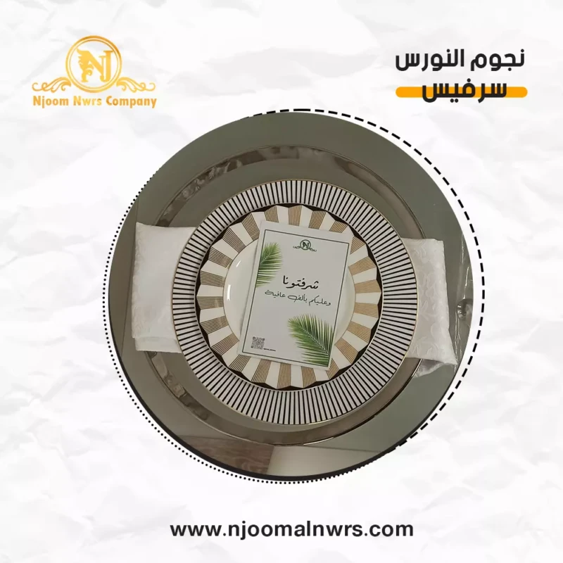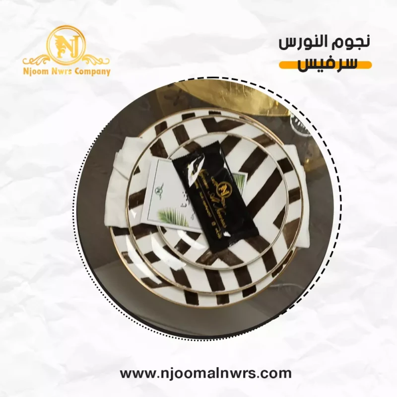 صحون كاسات ملاعق مناديل ورد على الصحن