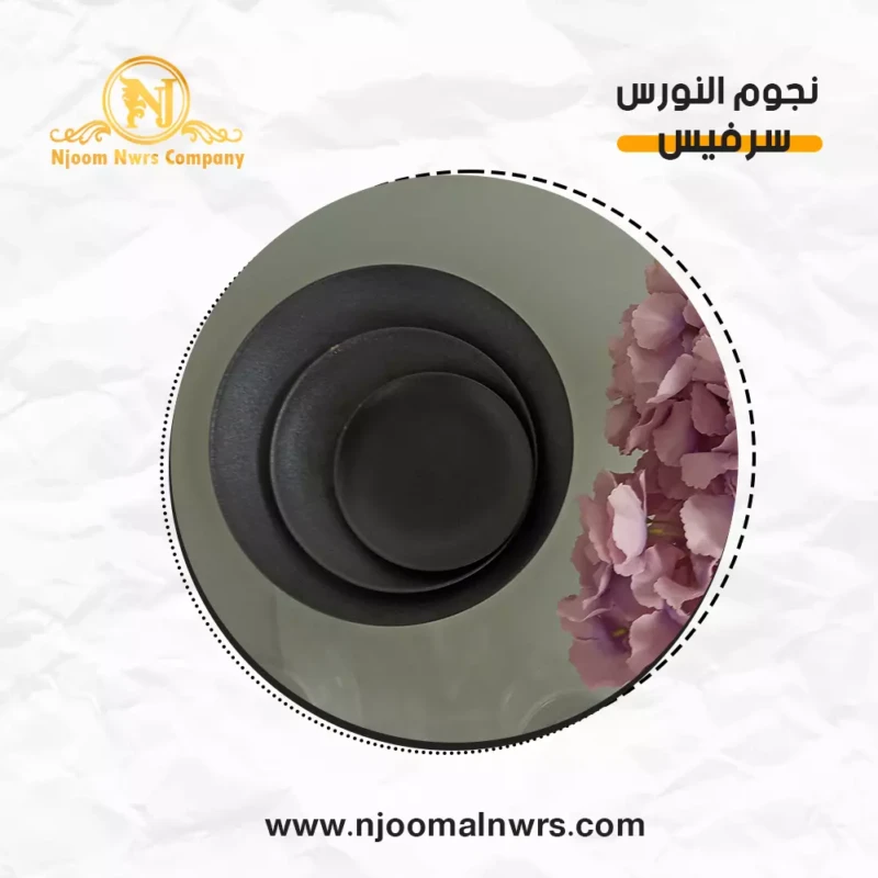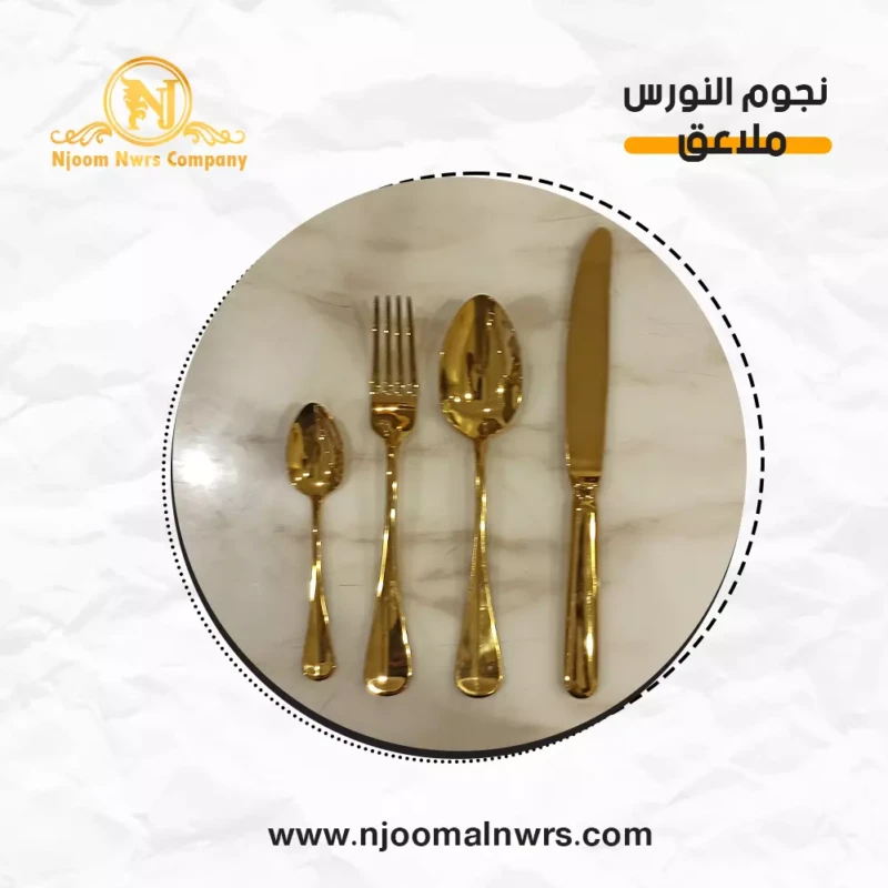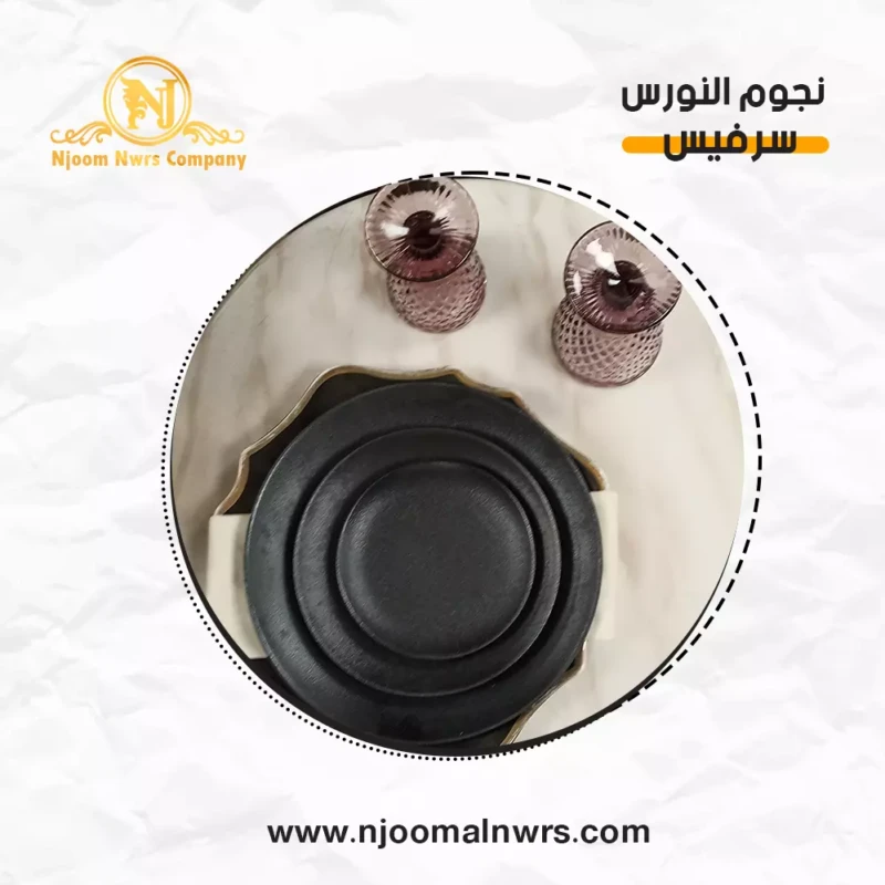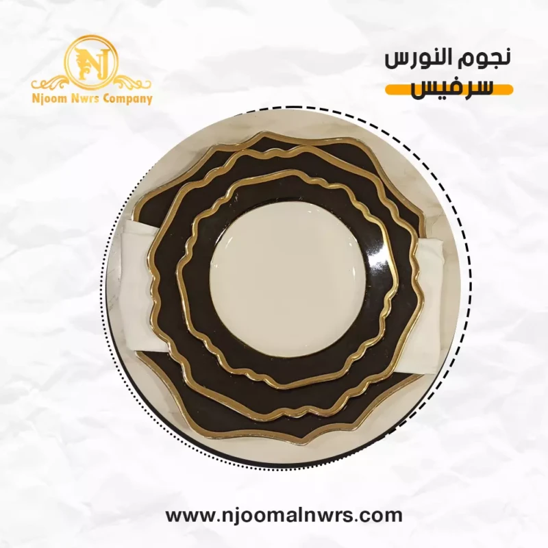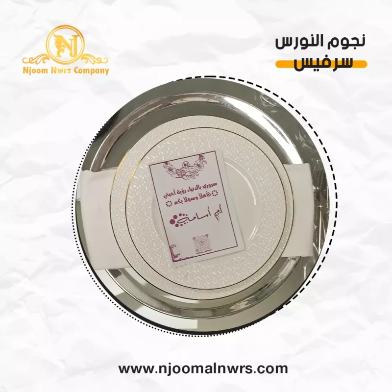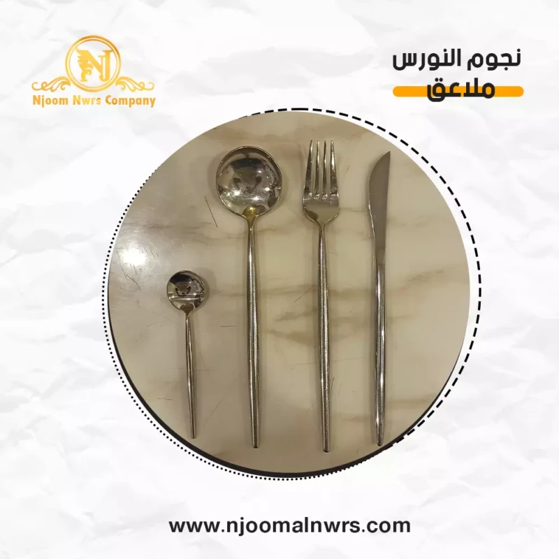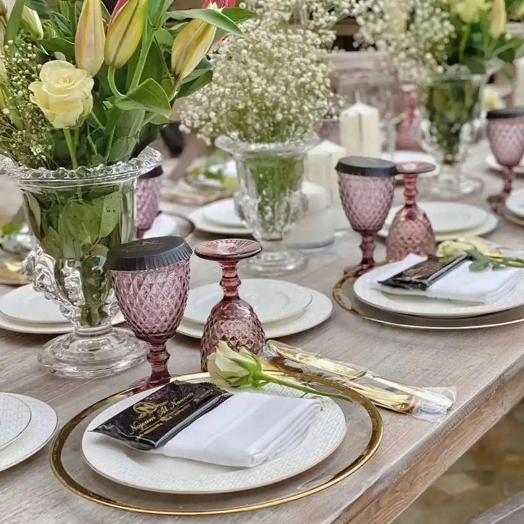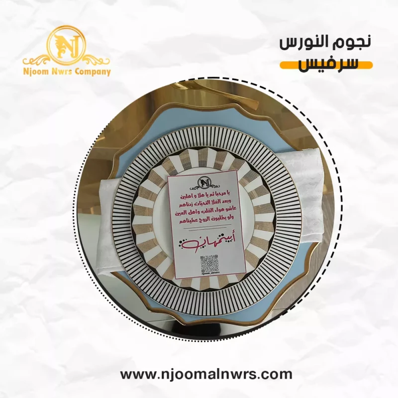 صحون كاسات ملاعق مناديل ورد على الصحن